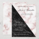 Imprima seus convidados de casamento com este maravilhoso anúncio de casamento e convite de mármore preto e rosa de ouro. Convite de casamento simples e elegante que lhe permite adicionar todas as informações necessárias para informar os seus convidados sobre o dia do casamento. Se você tiver um site de informações de casamento, poderá adicionar seu endereço de site de casamento no cartão para permitir que os convidados enviem facilmente seu RSVP.