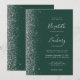 A margem esquerda deste elegante convite de casamento moderno apresenta um design de cintilação de prata. O texto personalizável combina a escrita manual de cinzas prateadas, fontes copperplate e itálico em um fundo verde esmeralda. O verso apresenta um design emerald verde e prateado brilhante.