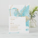 Convite Casamento com Abstrato de de Azul e Ouro de Luxo