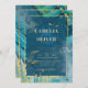 Convite Casamento com Abstrato de Pavock Blue Dourado INK