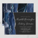 Convite Casamento com Agata Azul de Prata Marinho Moderno