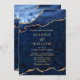 Convite De Casamento De Agatos Azuis De Marble Marinho Moderno.