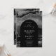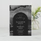 Este design moderno apresenta uma forma de arco preto sobre um fundo de aquarela preta, cortada com brilho de prata. A palavra "casamento" aparece em um roteiro branco elegante. Personalize o convite com os nomes da noiva e do noivo numa combinação de tipografia serif e sans serif e os detalhes do casamento em itálico.