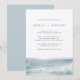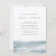 Traga vibrações do oceano sereno para o seu grande dia com este convite de casamento costeiro moderno do Criativo de Estrada Marinho. Apresentando uma tipografia minimalista e uma paisagem macia de aquarela, esta design é perfeita para casamentos de praia, comemorações de destino, ou qualquer evento com um tema litorâneo e certeiro. Totalmente personalizável com seus nomes, data e detalhes do evento.