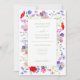 Bela obra de arte floral em aquarela ideal para casamento de primavera ou verão. Um design caprichoso, mas elegante, com tipografia moderna e modelos fáceis de personalizar. As pinturas de flores silvestres incluem papoulas vermelhas vibrantes, centáureas, cosmos, miosótis e billy buttons em roxo, rosa, verde-sage, azul-turquesa, laranja e azul. Arte botânica original da artista Catherine Sweetman
