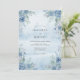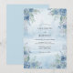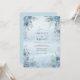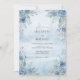 Este design apresenta uma lavagem de aquarela serena em azul céu suave, criando uma atmosfera etérea e romântica. Rosas azuis delicadas e folhagens exuberantes adornam os cantos, evocando uma manhã tranquila na natureza. A paleta combina tons de azul azuis, cerúleo e verde sálvia para um visual sofisticado. Perfeito para um evento arejado de primavera ou verão, a obra de arte apresenta elegância botânica com um toque sonhador e pictórico.
