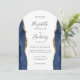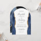 Este elegante convite de casamento moderno em forma de arco apresenta marinho azul de aquarela agata bordas laterais aparadas com falso brilho dourado. O texto personalizável combina a escrita manual de cinzas de carvão, as fontes em copperplate e itálico em um fundo branco. O verso apresenta um design azul-marinho e um agate-ouro correspondentes.