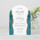 Este elegante convite de casamento moderno em forma de arco apresenta a cor d'água lacrimogênea de cor lacrimogênea aparada com uma falso brilho dourado. O texto personalizável combina a escrita manual de cinzas de carvão, as fontes em copperplate e itálico em um fundo branco. O verso apresenta um design de chaleira e de agata dourada.