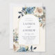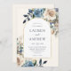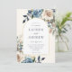 Este elegante convite de casamento floral de aquarela apresenta um falso quadro de arco de ouro e letra de caligrafia. As flores impermeáveis pintadas manualmente em azul-marinho rústico e cores creme são perfeitas para uma queda ou casamento no inverno. Edite este convite usando as ferramentas de modelo on-line do Zazzle. Designs são ilustrações/gráficos impressos planos - NÃO FOIL REAL.