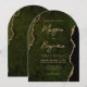 Este elegante convite de casamento em forma de arco apresenta uma imagem de fundo da aquarela verde-oliva, cortada com falso brilho dourado. O texto personalizável combina manuscrito, protetor e fontes itálicas de cor dourada. O verso apresenta um design de cor verde-oliva e de agata-ouro coordenadores.