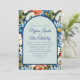 Negrito e vibrante, este convite de casamento em forma de arco é uma escolha incrível para casais que querem que seu dia especial se destaque. O design apresenta uma borda colorida de margaridas e flores silvestres em azul vívido, branco e laranja, moldando um painel central azul macio com um topo arquitetado distinto. O roteiro elegante destaca os nomes do casal, enquanto o texto serif limpo e moderno mostra os detalhes do casamento. Perfeito para o verão, jardim ou casamentos boêmicos, este convite pode ser personalizado com sua própria redação, fontes e cores. As placas RSVP correspondentes, as datas e as notas de obrigado estão disponíveis para um conjunto coordenado.