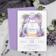 Convite de casamento com arco floral de lavanda com texto branco e fundo branco na frente e tom lilás no verso. Personalize-o completamente com seu texto, local da cerimônia, registro e informações de RSVP. Produtos de conjunto correspondente disponíveis.