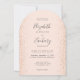 Este elegante convite de casamento moderno em forma de arco apresenta bordas laterais de falso rosa dourado. O texto personalizável combina a escrita manual de cinzas de carvão, fontes em copperplate e itálico em um fundo cor-de-rosa pincelado. O verso apresenta um design brilhante de cor azul e rosa.