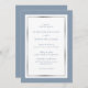Elegante personalizou o convite de casamento empoeirado, azul e prata. Personalizar facilmente online. Itens de correspondência disponíveis para complementar estes convites de casamento modernos, azuis e prateados. Para pedidos personalizados, envie-nos uma mensagem através do bate-papo Zazzle.