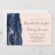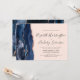 A borda esquerda deste elegante convite de casamento moderno apresenta um marinho azul de aquarela agate bordado com falso brilho rosa de ouro. O texto personalizável combina a escrita manual de cinzas de carvão, fontes em copperplate e itálico em um fundo cor-de-rosa pincelado. O verso apresenta um design marinho de agate azul e rosa dourado correspondente.