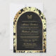 Amaze seus hóspedes com este elegante convite de casamento de borboleta de arco apresentando lindos padrões de arte de linha com borboleta dourada. Também com código QR para RSVP on-line ou local do local. Basta adicionar os detalhes do seu evento neste modelo fácil de usar e adorar este cartão com as suas fotografias favoritas para o tornar um convite único.