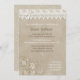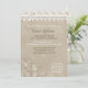 Lace de creme de marfim neutro sobre fundo macio e esticado com sotaque de canto de flor e borboletas. Impressão texturizada de Faux. A placa de volta tem um design de coordenação. Personalize este Chá de panela com a Noiva como nomes, hora, data e localização do Chá e outras informações. Este convite tem um belo detalhe rico e um elegante visual de vintage. Tema de correspondência disponível em outros produtos na minha loja.