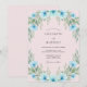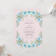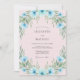 Delicados florescimentos azul-celeste e folhagens verde suaves criam uma borda caprichosa. Este design artístico evoca um clima romântico e etéreo para uma ocasião especial. O estilo pintado adiciona um toque de elegância artesanal.