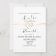 Simples, elegante, minimalista, delicado, convite para casamento branco romântico com coração de corda de ouro e roteiro de caligrafia de tendências.
