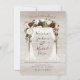 Convite para Casamento de Madeira de Madeira Rústica Floral de Casca Floral com Arco, Burgundy Escura, elementos florais claros, cor-de-rosa claro e branco, luzes cintilantes e painéis de segurança. Todas as palavras podem ser alteradas para ajustado do seu evento. Excelente para um lugar que seja floresta, natureza ou celeiro.