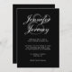 Esses elegantes convites personalizados para casamento apresentam um moderno e minimalista design de roteiro de caligrafia branco e cinza em um simples fundo preto. Personalize com seus nomes e data de casamento junto com todos os seus detalhes de casamento. Os melhores votos para o seu casamento e casamento! Desenhada por Susan Coffey.