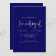 Marinho de Script Dourado de Champanhe Moderno Código QR Azul Casamento ou mudança para qualquer cor de sua escolha. O Casamento está em uma escrita fixa e personaliza facilmente o resto do texto. Basta substituir o URL de exemplo no campo modelo por seu próprio URL e seu código QR será criado automaticamente para a conveniência de seus convidados responderem online.