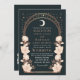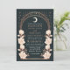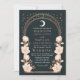 Capture a elegância do eterno com este convite inspirado no Celestial Art Nouveau! Apresentando um arco radiante de ouro, delicadas flores brancas e cintilantes estrelas contra um rico fundo azul, esta design dá o tom para uma celebração sofisticada. Perfeito para casamentos, galas e eventos de marco! Note que o ouro neste produto NÃO é folha de alumínio real; é impresso plano.