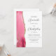 A borda esquerda deste elegante convite de casamento moderno apresenta uma coloração d'água rosa, borda agitada, aparada com falso brilho dourado. O texto personalizável combina o script de cinza de carvão e as fontes sans serif em um fundo branco. O verso oferece espaço para detalhes do casamento, juntamente com um código QR que os convidados podem digitalizar para visitar seu site e RSVP, o que economiza o custo de impressão e envio de cartões RSVP separados.