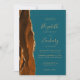A borda esquerda deste elegante convite de casamento moderno apresenta uma cor de água laranja queimada, aparada com falsa brilho dourado. O texto personalizável combina manuscrito dourado, fontes em copperplate e itálico em um fundo azul lacrimogêneo. O verso fornece espaço para detalhes do casamento em um fundo de terra firme, junto com um código QR que os convidados podem digitalizar para visitar seu site e RSVP, o que economiza o custo de imprimir e enviar cartões RSVP separados.