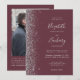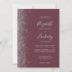 A margem esquerda deste elegante convite de casamento moderno apresenta um design de cintilação de prata. O texto personalizável combina a escrita manual de cinzas prateadas, fontes em copperplate e itálico em um fundo de burlagem escura. Adicione sua foto favorita ao verso, juntamente com texto adicional e um código QR para enviar convidados para o site do seu casamento.