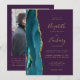 A borda esquerda deste elegante convite de casamento moderno apresenta uma cor azul-lacrimogênea agata borda com falsa brilho dourado. O texto personalizável combina manuscrito dourado, fontes em copperplate e itálico em um fundo roxo. Adicione sua foto favorita ao verso, juntamente com texto adicional e um código QR para enviar convidados para o site do seu casamento.