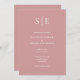 Este convite de casamento chico, minimalista e empoeirado cor-de-rosa pode ser personalizado com as suas iniciais de monograma e informações sobre o dia do casamento. Com os detalhes do seu site de casamento e o seu código QR no sentido inverso. Projetado por Thisnotme©