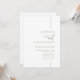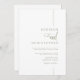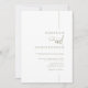 Um convite de casamento elegante e moderno, verde e branco, que apresenta texto minimalista com sotaque manuscrito e linha vertical de tendência. Personalize o modelo com seus detalhes. No verso, adicione seu código QR para levar convidados ao seu site de casamento. © Kimbellish, LLC