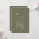 Este moderno monograma verde-oliva QR chamado convite de casamento é perfeito para um casamento moderno. A design boho de madeira apresenta tipografia rústica única e na moda boêmica numa cor verde mínima de floresta florestal. Salve o papel, incluindo um código QR para seu convidado para ver detalhes, RSVP ou ambos.
