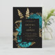 Convite Casamento com Código QR Dourado da Turquesa Floral