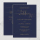 Este convite de casamento azul marinho e dourado elegante com caligrafia em coração pode ser personalizado com suas informações em tipografia sofisticada, com os detalhes do seu site de casamento e seu código QR no verso. Projetado por Thisisnotme©