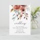 Convite de Casamento com Florais de Terracota Rústica em Script. Adicione o código QR ao seu site de casamento no verso, tornando esta uma opção conveniente para que os convidados respondam e vejam todos os detalhes sem a necessidade de cartões separados de RSVP e detalhes. Um estilo informal elegante para o cabeçalho sob a beleza dos florais em aquarela. Personalize facilmente com suas informações.