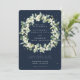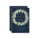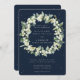 Flores de snowberry pintadas à mão e hastes de eucalipto arranjadas em uma linda coroa contra um fundo azul-marinho escuro. Todo o texto é totalmente editável para que você possa facilmente alterar a redação, bem como o estilo/cor/tamanho da fonte. A parte de trás apresenta uma dispersão opcional de pontos. Por favor, visualize esta Coleção na minha loja para convites com opções de redação alternativas, cores diferentes e itens coordenados.