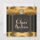 Este elegante convite de casamento em preto e ouro Art Deco é facilmente personalizado para o seu evento, simplesmente escolhendo o botão "Personalizar!" para começar a adicionar os detalhes do evento, estilo de fonte, tamanho de fonte e cor e texto. Este belo convite para o casamento do Art Deco preto e dourado é rico e elegante. Observe que todos os adesivos, cartões e designs de convite que você encontrará no Zazzle são gráficos impressos sem joias reais, arcos, levantados, gravados, ou peças ou peças adicionadas.