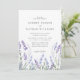 Convite de casamento com flores de campo de lavanda em aquarela elegante e romântica com detalhes no verso.