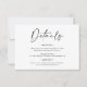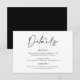 Cartão de detalhes de casamento moderno, simples e elegante em preto e branco.