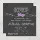 Modelo de convite de casamento para quadros de chalkboard de países rústicos, preto e branco. Estes convites para casamentos de giz têm dois corações roxos entrelaçados e "acreditamos no tipo de amor que dura uma vida inteira", assim como o tradicional "Matrimônio Sagrado". Este simples e tradicional convite de casamento de chalkboard adiciona um toque de maldade antiquada!