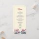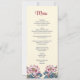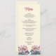 Este cartão de cardápio tibetano apresenta um símbolo tradicional de nó sem fim e flores de lótus num estilo artístico tibetano/asiático contra um fundo creme moderno.
