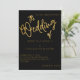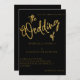 Um convite de casamento minimalista, moderno, ao estilo preto e ouro, ao estilo da arte reluzente, com um coração dourado brilhando nas costas. Este convite elegante é perfeito para um casamento moderno. Emparelhe-o com o cartão de inserção de detalhes do casamento correspondente ou adicione seus detalhes ao verso do convite.