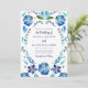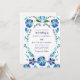 Celebre seu dia especial com o nosso "Convite de Casamento Blue and White Mexican Floral Fiesta". Com uma vibrante variedade de flores azuis pintadas à mão em aquarela contra um fundo branco limpo, este convite captura a essência da elegância e da celebração. O texto azul-marinho envolve elegantemente a animada variedade de flores azuis em tons variados, criando um contraste marcante e um toque de sofisticação. Abrace a beleza desses padrões florais intrincados que encapsulam o espírito vibrante de uma festa mexicana, definindo o tom para uma celebração alegre.