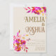 Convite Casamento com Flor Rosa e Laranja Queimada