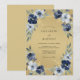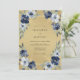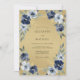 Uma cascata romântica de profundas flores navais e brancas suaves adorna este design. Um verde delicado tece as arranjos florais, criando uma atmosfera elegante e caprichosa. Esta obra de arte evoca uma sensação de beleza clássica com um toque de estilo moderno.