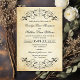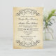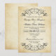 Um convite de casamento deslumbrante com floreios ornamentados em preto sobre um fundo de papel pergaminho envelhecido com bordas quentes e desgastadas. O nome em letra caligráfica e a tipografia serif refinada evocam o charme da correspondência antiga para um verdadeiro sentimento antigo. Todo o texto, incluindo nomes, data, detalhes da cerimônia e recepção, é totalmente editável.