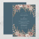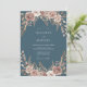 Este design romântico apresenta um arranjo floral suave e pintado em tons de rosa e creme desbotados contra um fundo azul desbotado profundo. Botânicos delicados e folhagens criam uma atmosfera etérea e elegante, perfeita para um evento sofisticado.