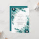 Convite Casamento com Florescimento Abstrato em Verde-azul